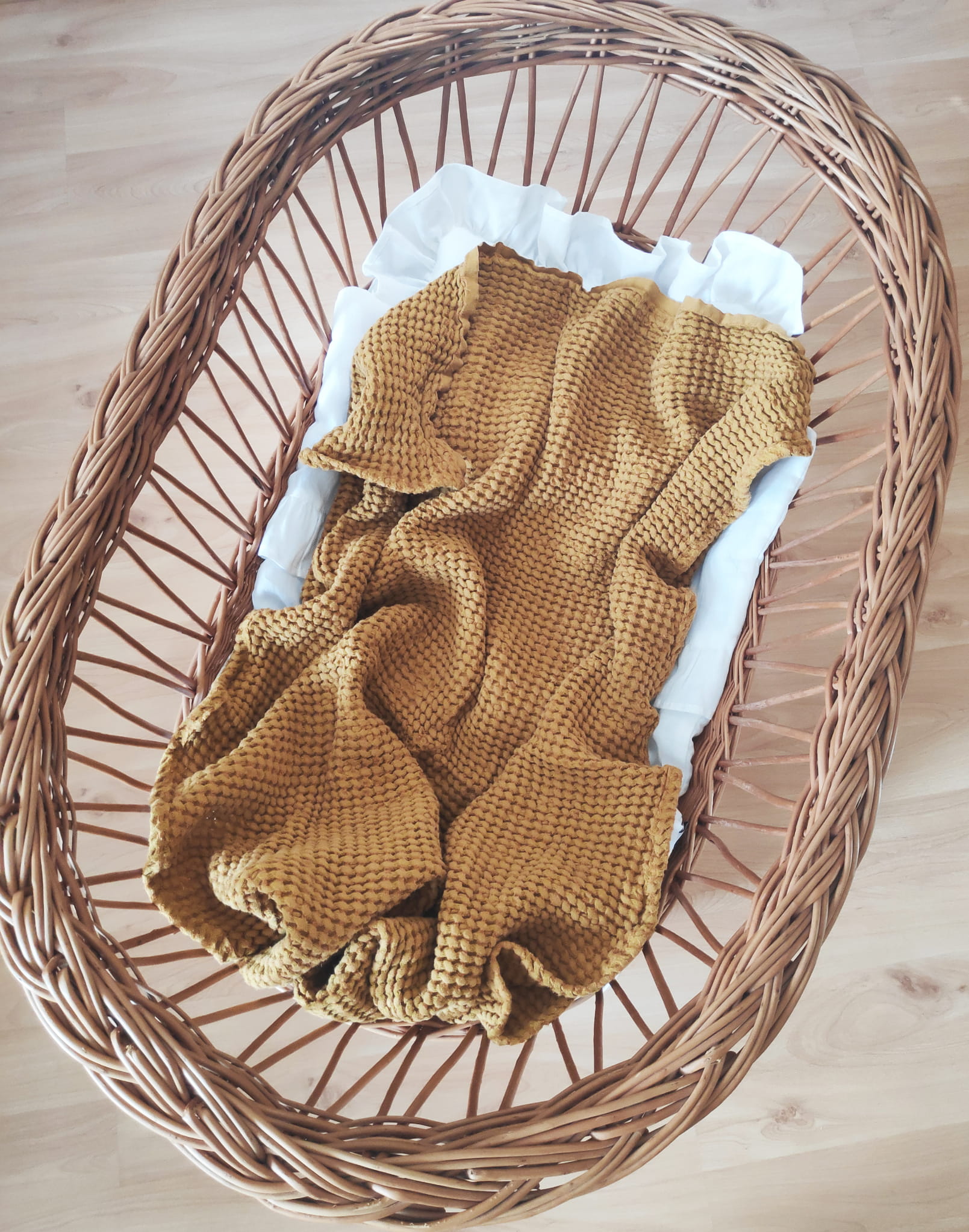 Linen baby blanket will delight you with its softness. It is a wafer blanket and thanks to its characteristic structure it looks really beautiful. The linen content provides thermoregulation properties. It keeps your baby cool on warm days and retains heat from baby body in cool ones, making it suitable for both summer and winter. It can be used as a baby swaddle, blanket for a stroller or bedspread. It's a great baby shower gift. Your baby will love it. :)