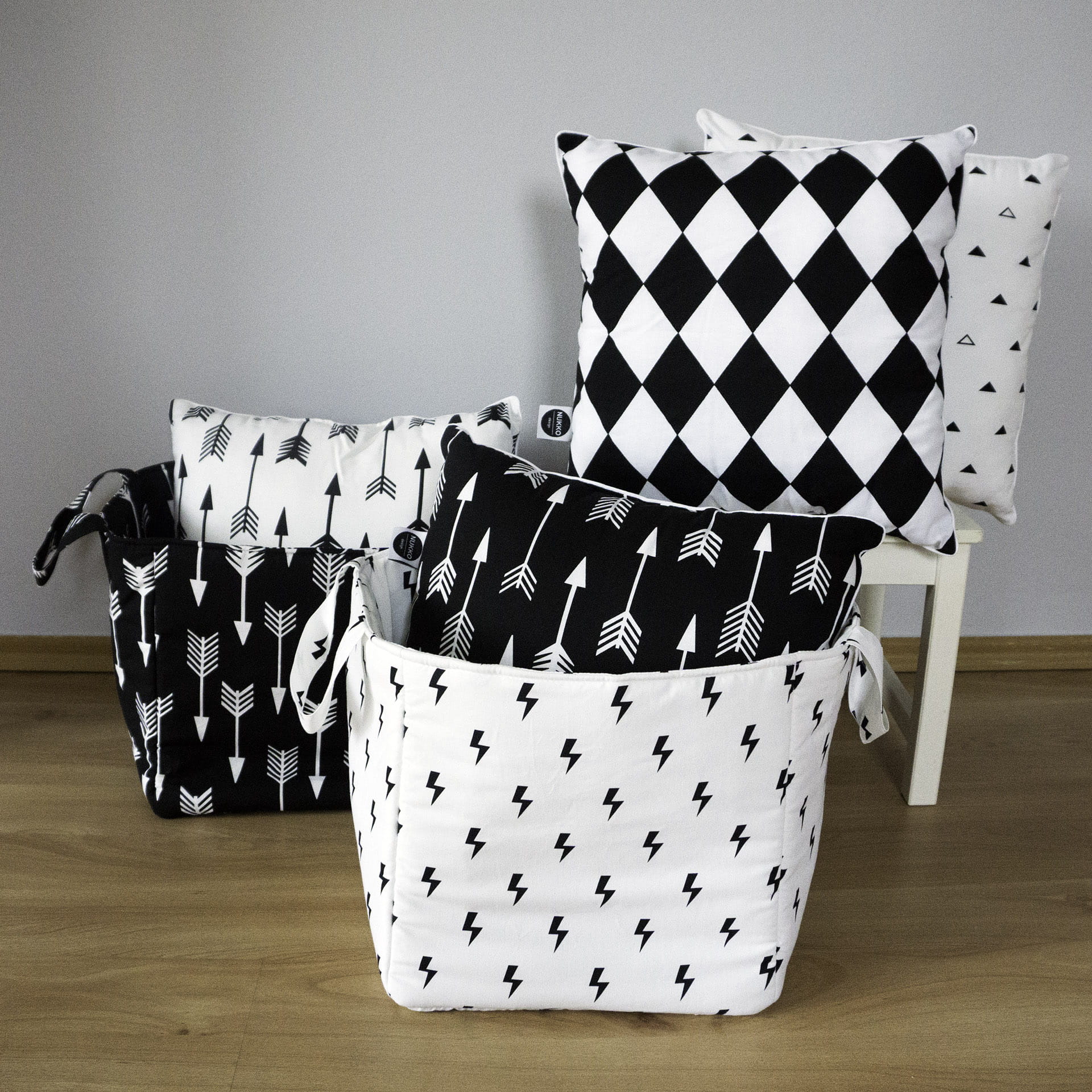 Toy storage helps to keep the baby's room clean. It is very capacious and makes it easy to store toys, blankets or clothes. Thanks to the beautiful modern design your child and you will love it! Get the monochrome nursery look with this lovely fabric. Handles make it easy to carry. It's lovely baby shower gift.