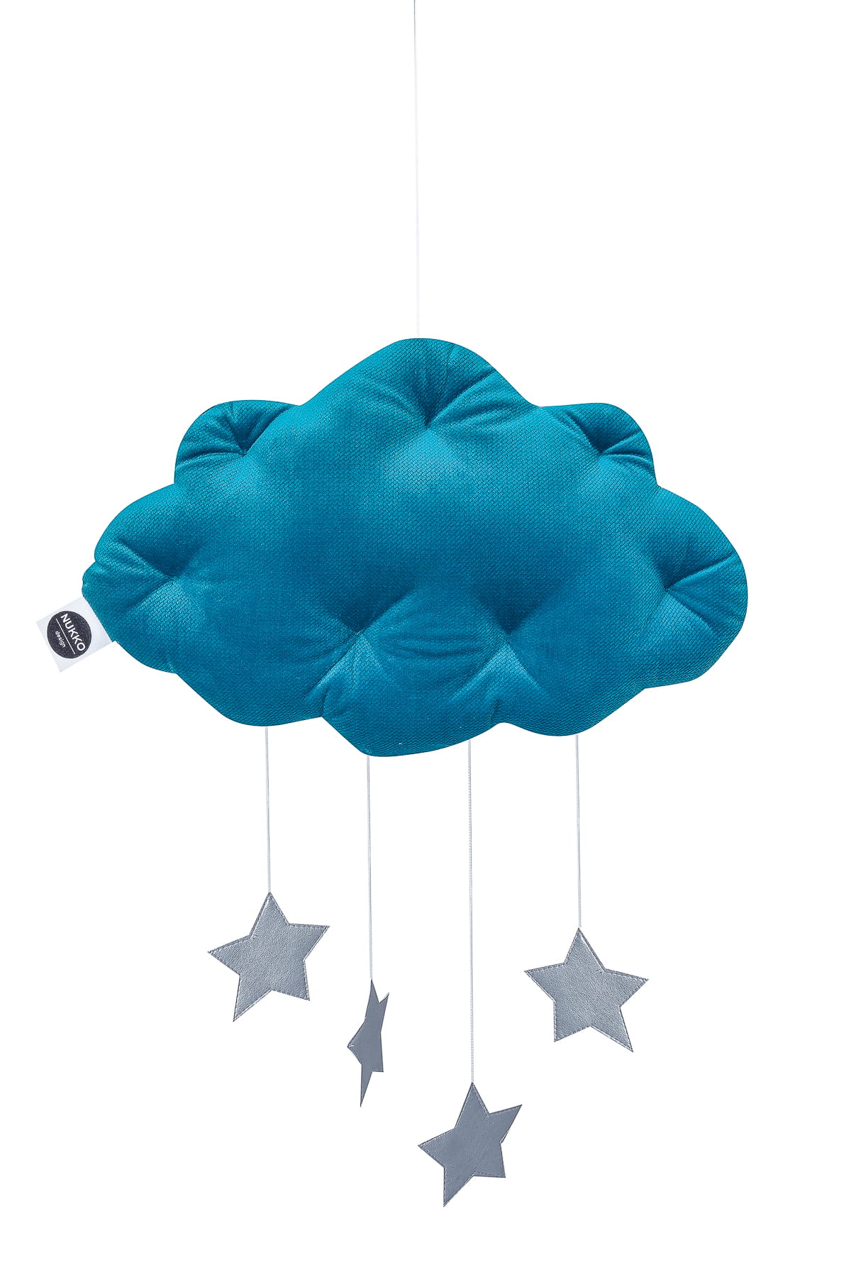 Adorable cloud mobile with silver metallic stars will enrich every interior. It can be hanged under canopy, above the crib or decorate the wall. It will complete kid’s room arrangement. Made of soft Velvet fabric, it presents itself fabulously.