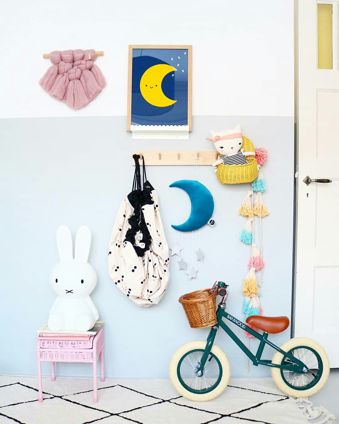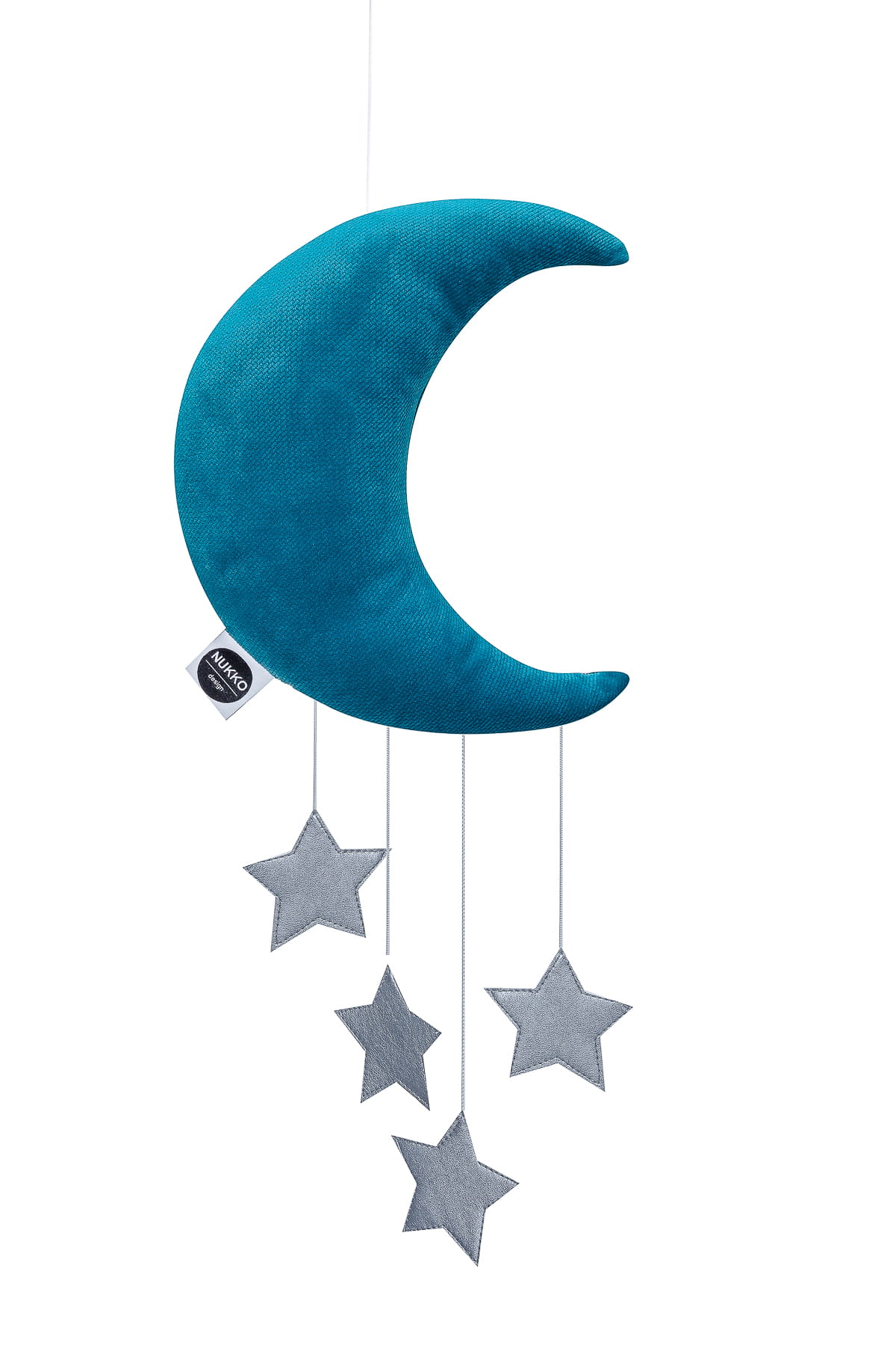 Adorable moon mobile with silver metallic stars will enrich every interior. It can be hanged under canopy, above the crib or decorate the wall. It will complete kid’s room arrangement. Made of soft Velvet fabric, it presents itself fabulously.