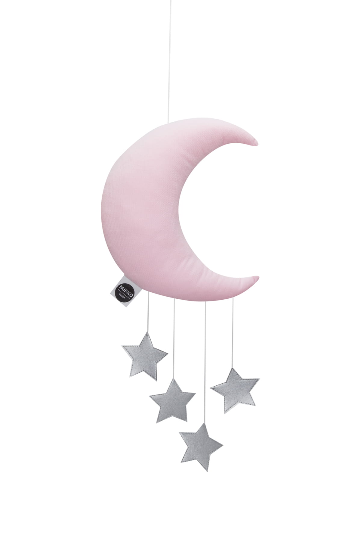 Adorable moon mobile with silver metallic stars will enrich every interior. It can be hanged under canopy, above the crib or decorate the wall. It will complete kid’s room arrangement. Made of soft Velvet fabric, it presents itself fabulously.