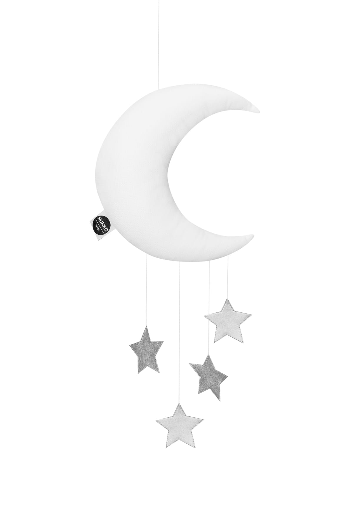 Adorable moon mobile with silver metallic stars will enrich every interior. It can be hanged under canopy, above the crib or decorate the wall. It will complete kid’s room arrangement. Made of soft Velvet fabric, it presents itself fabulously.